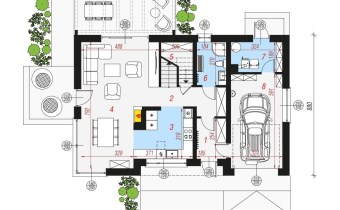 • garaż w bryle budynku